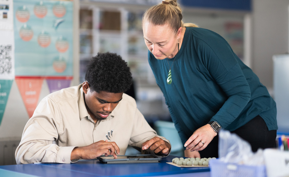 Today, every teacher at Rotorua Boys’ receives a Ministry of Education–subsidised MacBook, as well as a school-issued iPad and Apple Pencil. School leaders have found that these devices enable teachers to create engaging and interactive lessons that embrace the reciprocal, knowledge-sharing nature of Māori culture. Together with professional learning, every educator completes the Apple Teacher program and several are certified Apple Learning Coaches. Teachers are supported with the knowledge and tools they need to design dynamic, inclusive lessons.