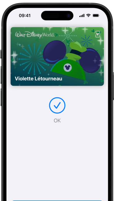 Si vous avez déjà ajouté une carte de crédit, carte de débit ou carte de fidélité compatible avec Apple Pay dans Portefeuille, double-cliquez sur le bouton principal pour ouvrir l’app, puis approchez votre appareil du lecteur. Sur