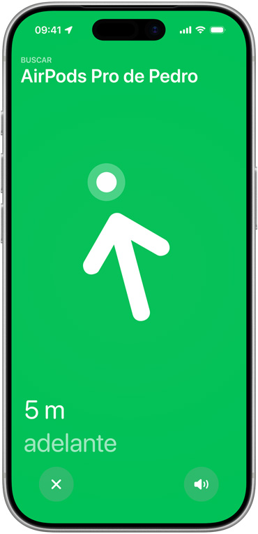 Encuentra tus AirPods Pro exactamente donde los dejaste. El estuche de carga incorpora una nueva generación de banda ultra ancha que aumenta la distancia de Rastreo Preciso 1,5 veces.12 Y gracias al parlante incorporado en el estuche, podrás encontrar tus AirPods aunque se hayan escondido en el recoveco más recóndito de tu sofá.