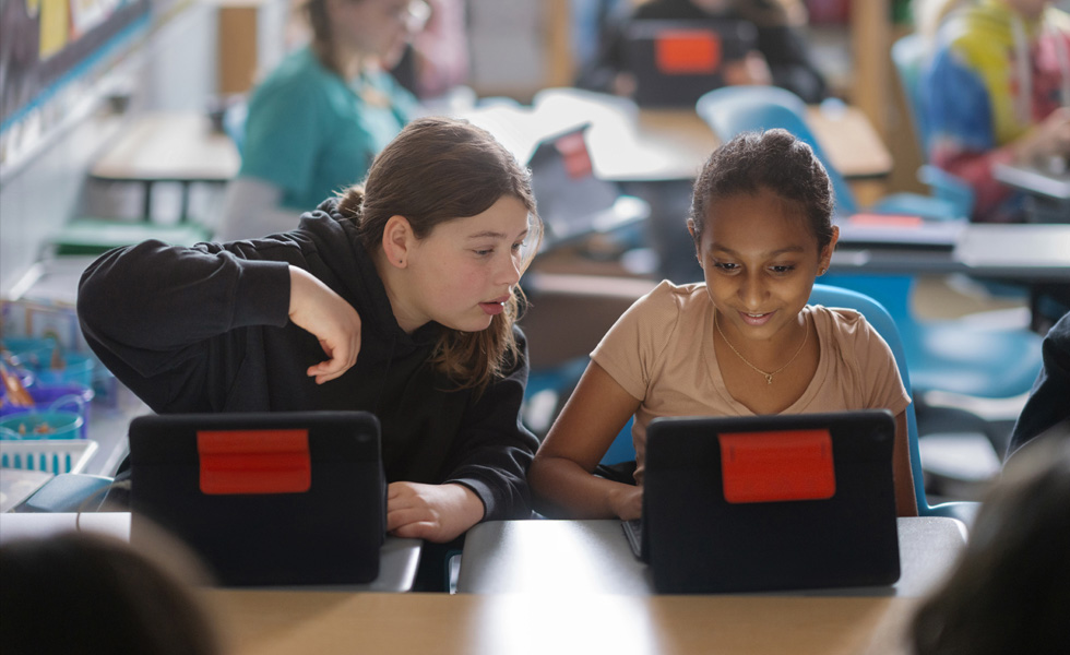 Teknologi Apple merupakan fondasi bagi praktik pembelajaran yang inovatif di seluruh distrik. Di sekolah dasar Bertha Shaw Public School, para guru menggunakan iPad untuk membantu siswa membangun kemampuan literasi dan komunikasi lisan mereka dalam bahasa Prancis. Siswa mendengarkan petunjuk dalam bahasa Prancis di iPad, merekam respons lisan mereka ke dalam Seesaw, dan kemudian mendengarkannya kembali untuk memeriksa pelafalan mereka. Mereka juga menggunakan iPad untuk merekam film pendek dan animasi stop motion yang mereka narasikan dalam bahasa Prancis. Variasi metode pembelajaran ini lebih dari sekadar latihan menulis tradisional dan memungkinkan siswa untuk terlibat dalam aktivitas yang sesuai dengan keunggulan mereka, serta membuat pembelajaran mereka lebih terlihat oleh guru.