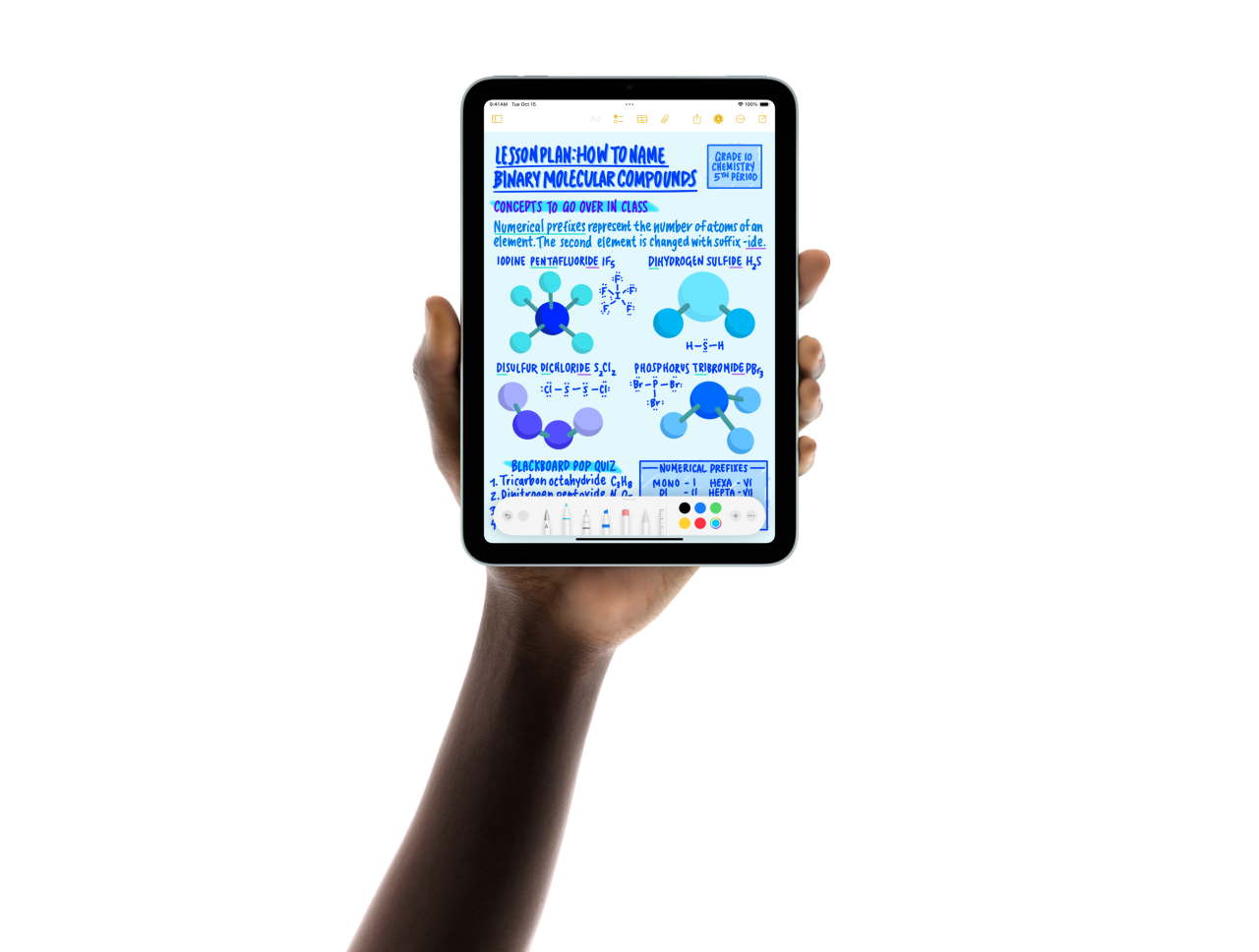 Apple Pencil Pro bisa merasakan ketika Anda menekannya, lalu memperlihatkan palet, sehingga Anda bisa berganti alat, tebal garis, dan warna dengan cepat.