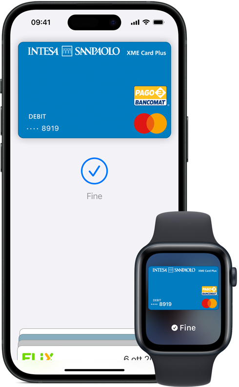 Apple Pay è più sicuro di una vera e propria carta di credito, di debito o prepagata. Gli acquisti su iPhone, Apple Watch, Mac o iPad si possono fare solo usando Face ID, Touch ID o il tuo codice di accesso. La tua identità e il numero della tua carta non vengono condivisi con l’esercente. E i dati della tua carta non vengono mai memorizzati sui server Apple.