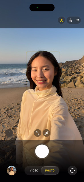 تمنحك الكاميرا الأمامية الجديدة خيارات مرنة لتأطير صورك وفيديوهاتك وغير ذلك الكثير. فبمجرد نقرة، تستطيع توسيع مجال الرؤية والتدوير من الوضع الرأسي إلى الأفقي من دون تحريك iPhone. وعندما ينضم الأصدقاء إلى اللقطة، يتوسع مجال الرؤية فتضمهم السيلفي جميعاً كي لا يبقى أحد خارج إطار الذكرى.