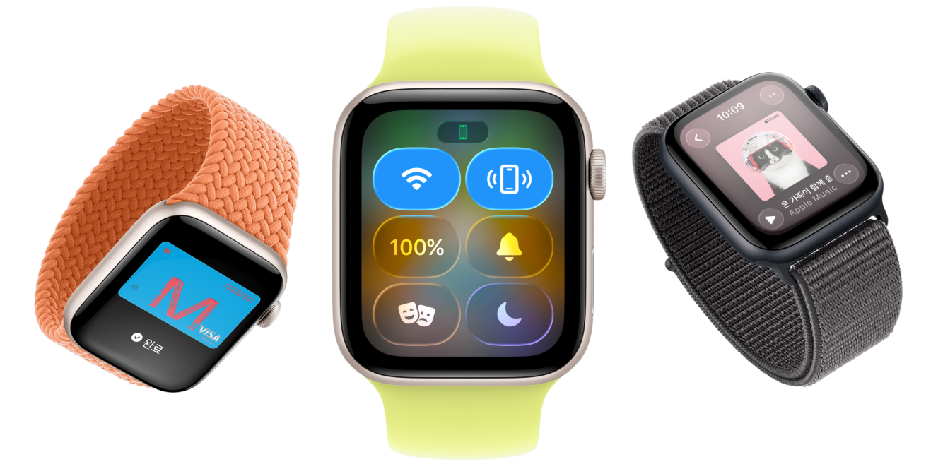 SE 3는 AirPods과 매끄럽게 연결되기 때문에 양손을 자유롭게 쓰면서 음악, 오디오북 또는 팟캐스트를 들을 수 있습니다.6 AirPods이 곁에 없는 경우에도 이제 시계 스피커를 통해 미디어를 재생할 수 있죠.