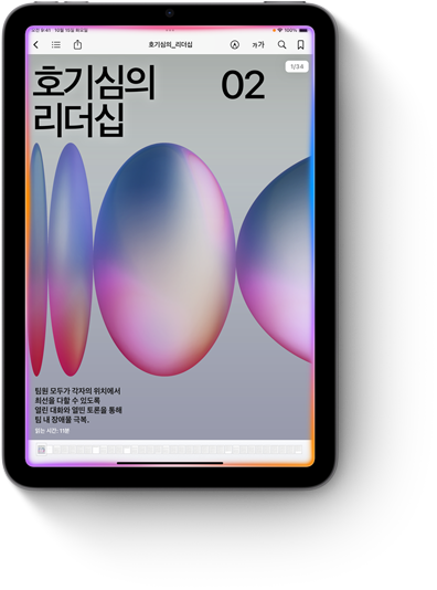 True Tone, P3의 넓은 색영역 그리고 초저 반사율까지 갖춘 21.0cm Liquid Retina 디스플레이. 어떤 환경에서든 텍스트는 또렷하게, 색상은 선명하게 구현해 줍니다.1