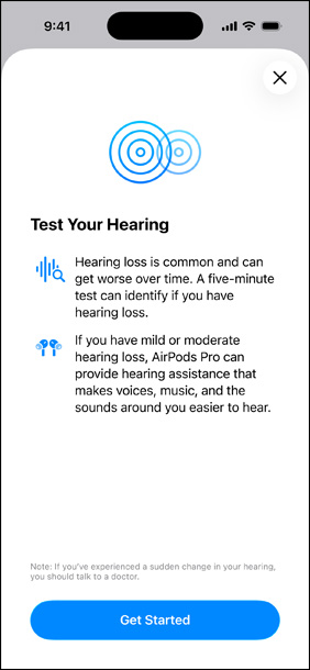 Les fonction­nalités Test d’audition et Appareil auditif sont des fonction­nalités de santé réglementées qui nécessitent une autorisation avant leur mise à disposition. La dispo­ni­bilité des fonction­nalités varie en fonction des régions.
