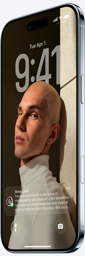 The time dynamically adapts to your photo wallpaper and notifications, keeping your subject in view. When you move your iPhone, your photo comes to life with a new 3D effect.15